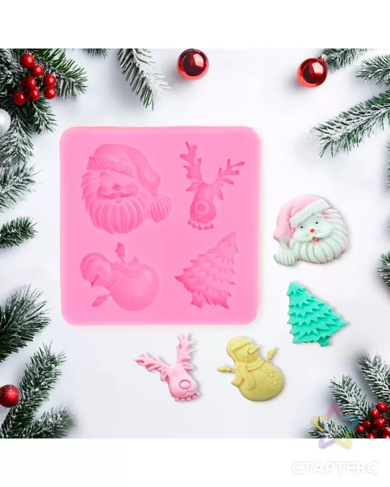 Главная Товары Силиконовые молды кондитерские Молд силиконовый 7,5×7,2 см "Новогодний антураж"
